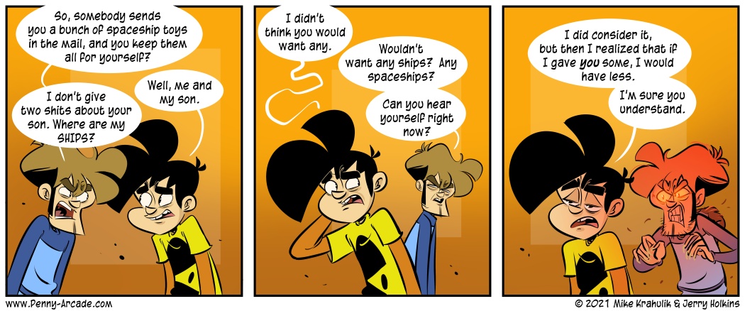 Occasional internal bombast notwithstanding, I don't know where Nintendo's Revolution fits into this grim Main Event. Because the machine has features which are either unripe or outside the ordinary continuum of expectation, I have no mental scheme which can position it against their competitors. As a result, and you've no doubt seen this as well in other forms of media, a brawl that is between three parties is almost always depicted as one between only two, and Nintendo is marginalized further in this generation. There is a kind of narrative in place and the players can largely be presumed.